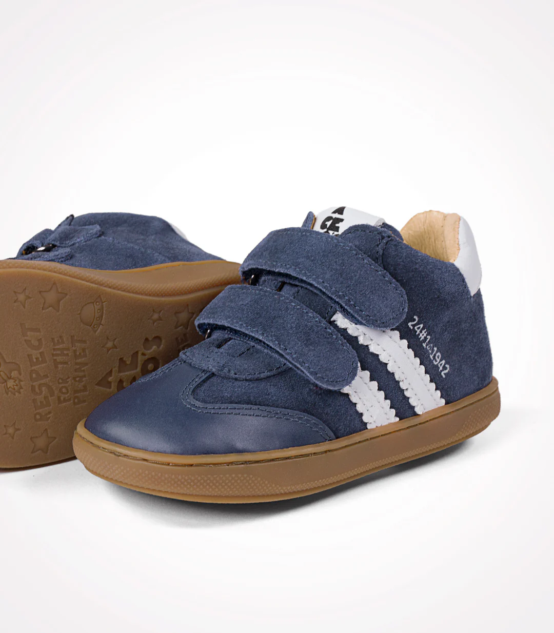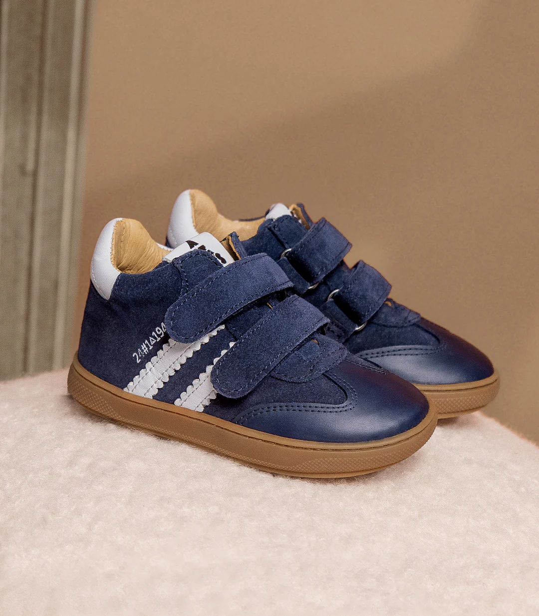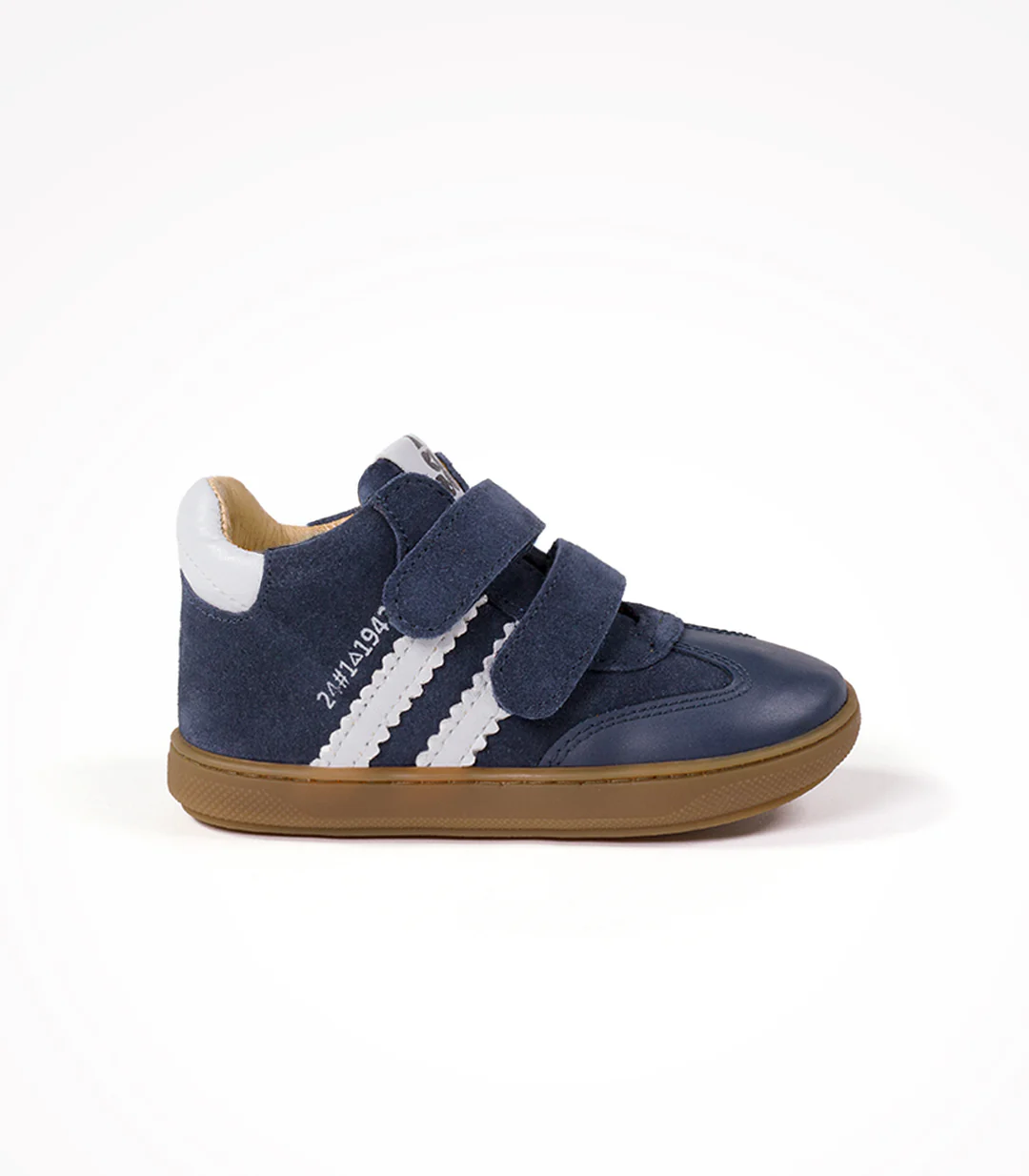 Tirso est une bottine pour enfant confortable et résistante, idéale au quotidien. Fabriquée en daim bleu marine avec des détails en cuir blanc, elle est dotée d’une double fermeture Velcro et d’un détail décoratif blanc sur le côté. La bottine Tirso est en cuir et entièrement doublée. La semelle intérieure en cuir est respirante, antibactérienne et amortissante.