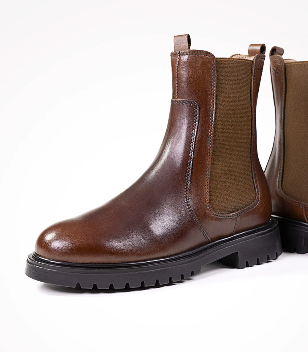 Pilar est une botte motarde pour fille en cuir nappa marron foncé, dotée d’empiècements latéraux élastiques, d’une semelle épaisse en caoutchouc et d’une fermeture éclair latérale pour un enfilage facile. La botte Pilar est dotée d’une tige en cuir, entièrement doublée et d’une semelle intérieure en cuir matelassée et respirante.