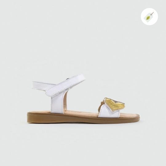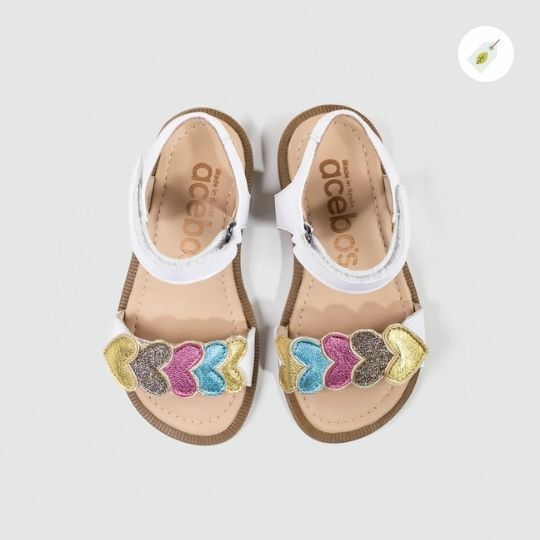 Découvrez la sandale Eliette blanche pour enfants d’Acebos, un modèle tendance et confortable pour les filles. Fabriquée en cuir blanc avec des motifs de cœurs en cuir métallisé et paillettes, cette sandale offre un ajustement parfait grâce à sa fermeture velcro au niveau de la cheville et de l’empeigne. Parfaite pour l’été !