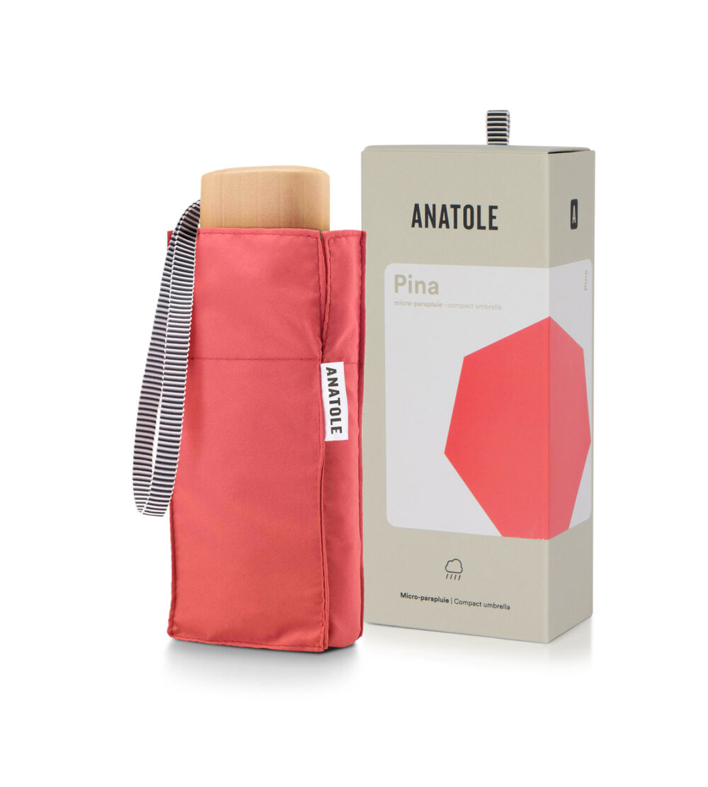 Découvrez le mini-parapluie Anatole au coloris gourmand « Sorbet Pina« . Avec son rose intermédiaire d’une élégance redoutable, il est moins pop qu’un fuchsia et plus profond qu’un corail, offrant ainsi un véritable sorbet à la fraise, chic et irrésistible. Ce parapluie femme/homme allie à la perfection style et praticité. Sa toile 100% recyclée, certifiée par INTERTEK et Global Recycled Standard, est conçue en tissu microfibres 190 microfils pour une résistance maximale. Les 7 baleines en fibre de verre et aluminium avec renforts en carbone assurent une solidité à toute épreuve. L’ouverture et la fermeture manuelles ajoutent à sa légèreté. Doté d’une attache bouton pression métal gravé, d’une poignée en bois d’érable et d’un passe-main en gros-grain, ce parapluie est un accessoire mode incontournable.