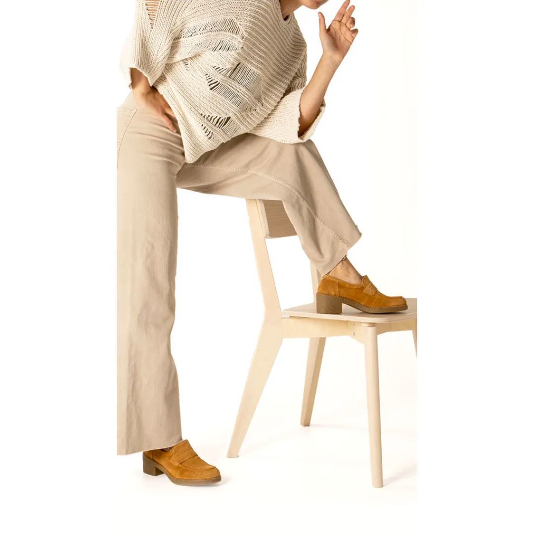 Les mocassins 5667 Ticino en cuir suédé soie couleur caramel allient sophistication européenne et beauté naturelle des Alpes.