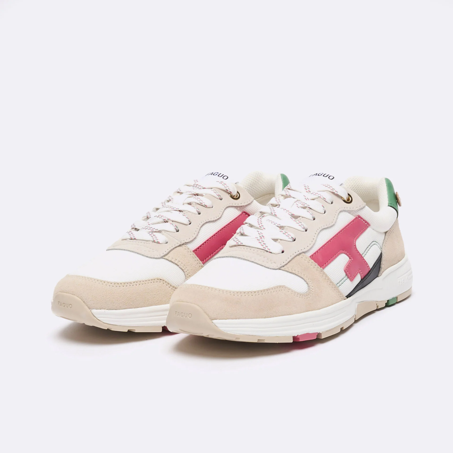 La basket verte et rose OLIVE est une running FAGUO lifestyle urbaine qui combine style et fonctionnalité.