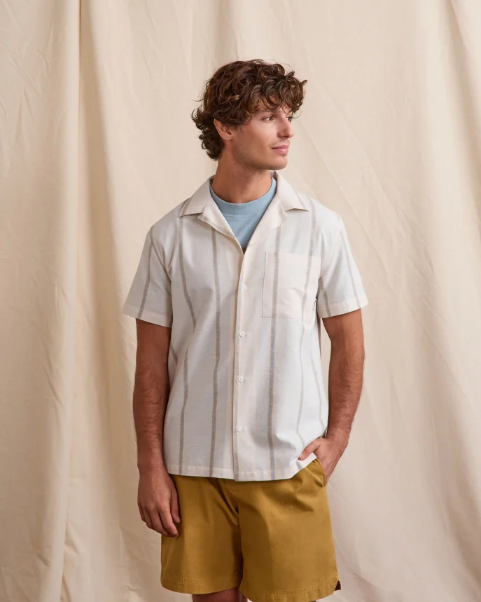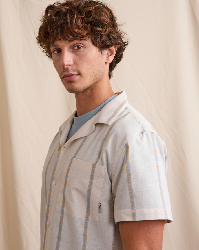 La chemise rayée homme écru et bleu PAIOLIVE est idéale pour un style estival frais et équilibré. Sa toile rayée apporte du rythme sans surcharger la silhouette. La coupe ample et le col cubain assurent un porté fluide. Une chemisette facile à vivre, pensée pour les beaux jours.