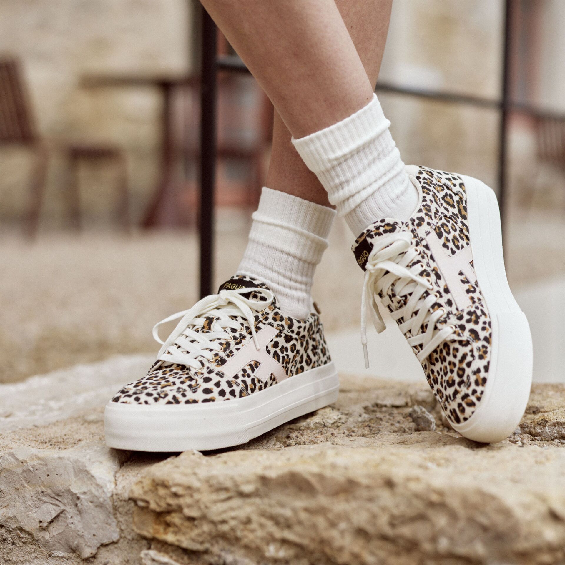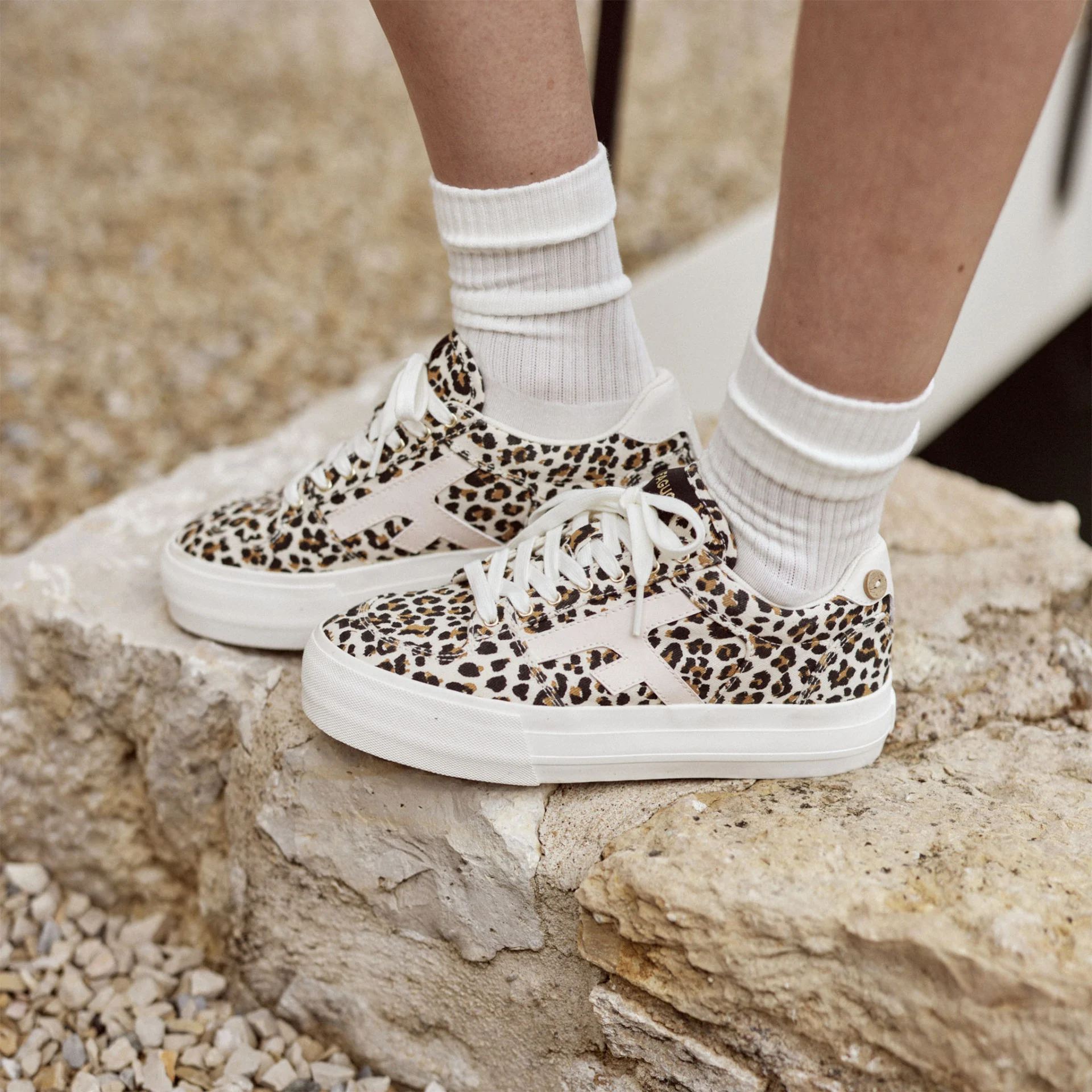 Dotée d’une semelle compensée de 4 cm, cette basket léopard compensée incarne un mélange parfait entre modernité et charme vintage, idéale pour composer des looks avec tes pièces préférées. Sa teinte beige intemporelle et ses motifs léopards s’harmonise facilement avec toutes les tenues, qu’elles soient décontractées ou plus habillées.