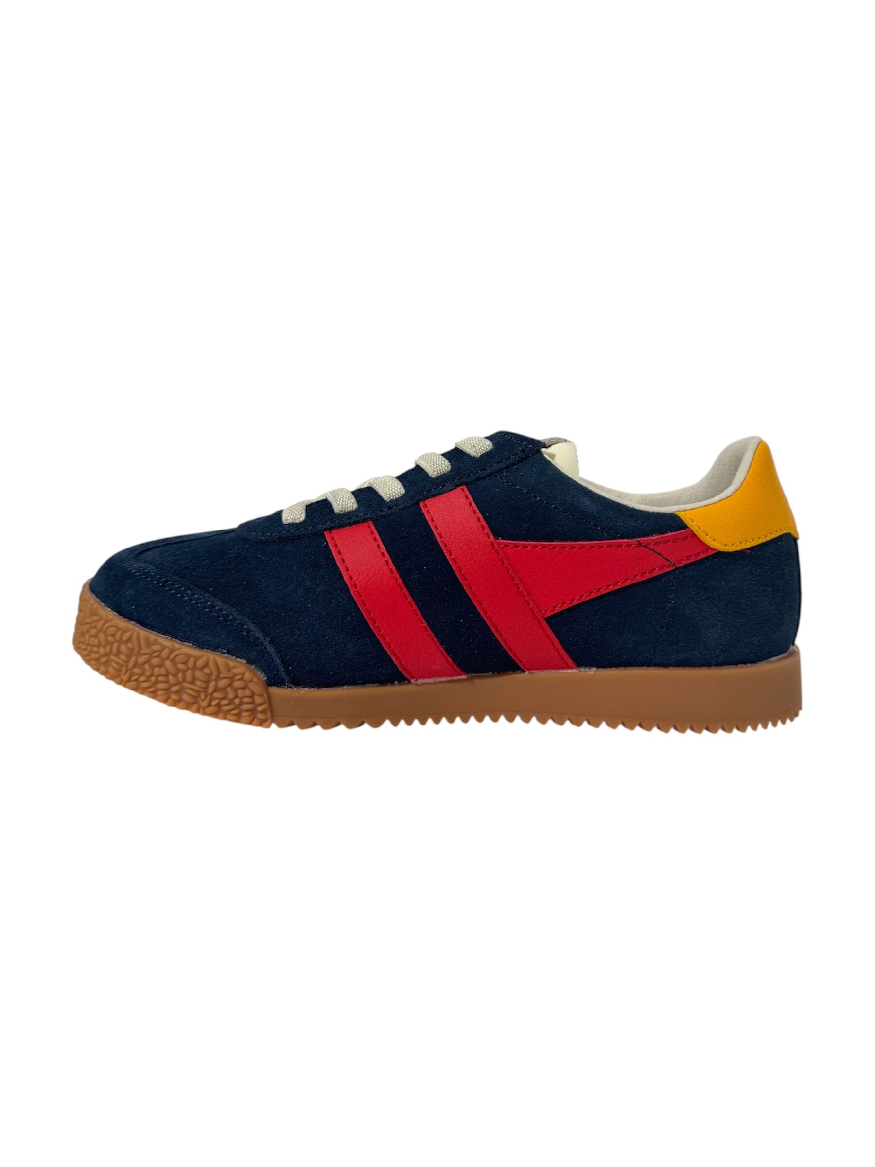 Le modèle Elan, a été revisité et réduit pour les enfants dans la nouvelle collection ! Les petits peuvent désormais s’exprimer avec style grâce à l’emblématique modèle Elan. Créée en 1971 et initialement conçue comme une chaussure d’entraînement polyvalente, la Gola Elan joue désormais un rôle différent grâce à ses combinaisons de couleurs vives et modernes. Dotée d’une tige en daim marine, d’un wingflash rouge contrastant et d’un talon jaune, la Elan pour enfant de Gola est une chaussure rétro et amusante pour les petits. Elle est également dotée d’une semelle en gomme, d’un lacet élastique pour un chaussage et un déchaussage faciles, et du logo emblématique de Gola wingflash.
