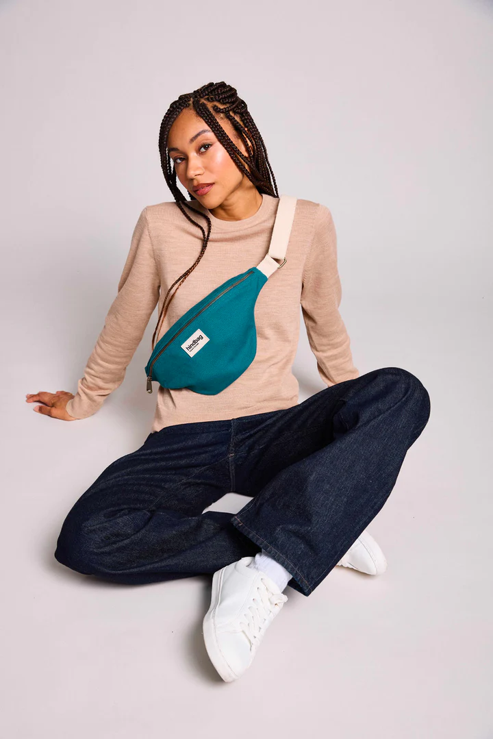 Olivia, c’est le sac banane qui va vite se rendre indispensable ! Avec son coton bio très épais et solide, elle transporte vos indispensables du quotidien sans se déformer et à l’abris des petites pluies. Grâce à son anse réglable, vous pouvez la porter aussi bien sur un manteau épais en hiver que sur un t-shirt léger l’été. Sa fermeture éclair en double zip hyper pratique vous permettra de porter votre sac en bandoulière sur l’épaule gauche ou droite sans que vos essentiels ne tombent à l’ouverture. Sac banane disponible en plusieurs coloris. Optez pour notre nouveau Bleu Paon, une teinte profonde et vibrante qui apporte une touche audacieuse et élégante.