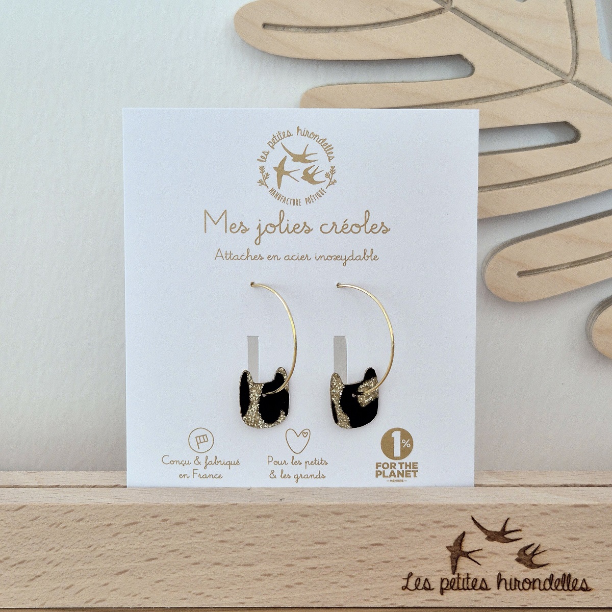 LES PETITES HIRONDELLES – Créoles pailletées Chats – Léopard doré