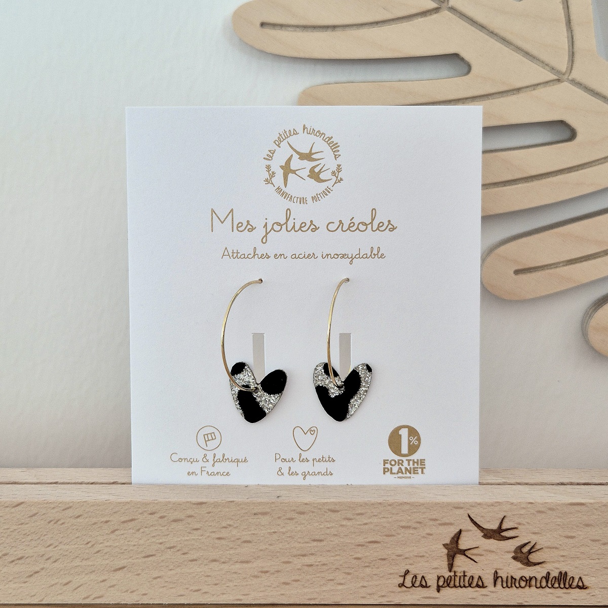 LES PETITES HIRONDELLES – Créoles pailletées Cœurs – Léopard argenté