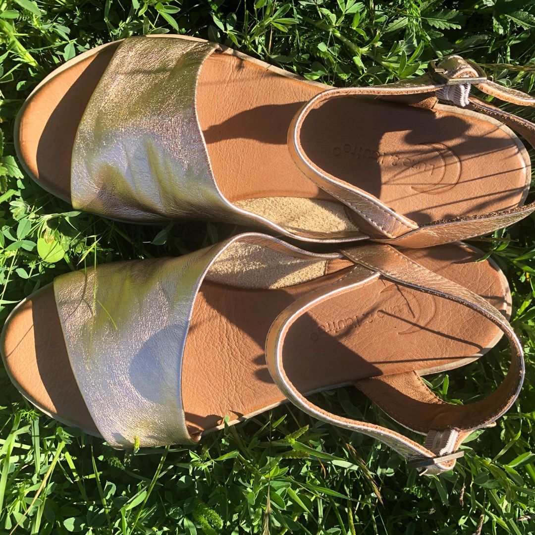 Les sandales Sandra en or de Lune et L’autre, élégantes et confortables, sont parfaites pour ajouter une touche de glamour à vos tenues estivales.