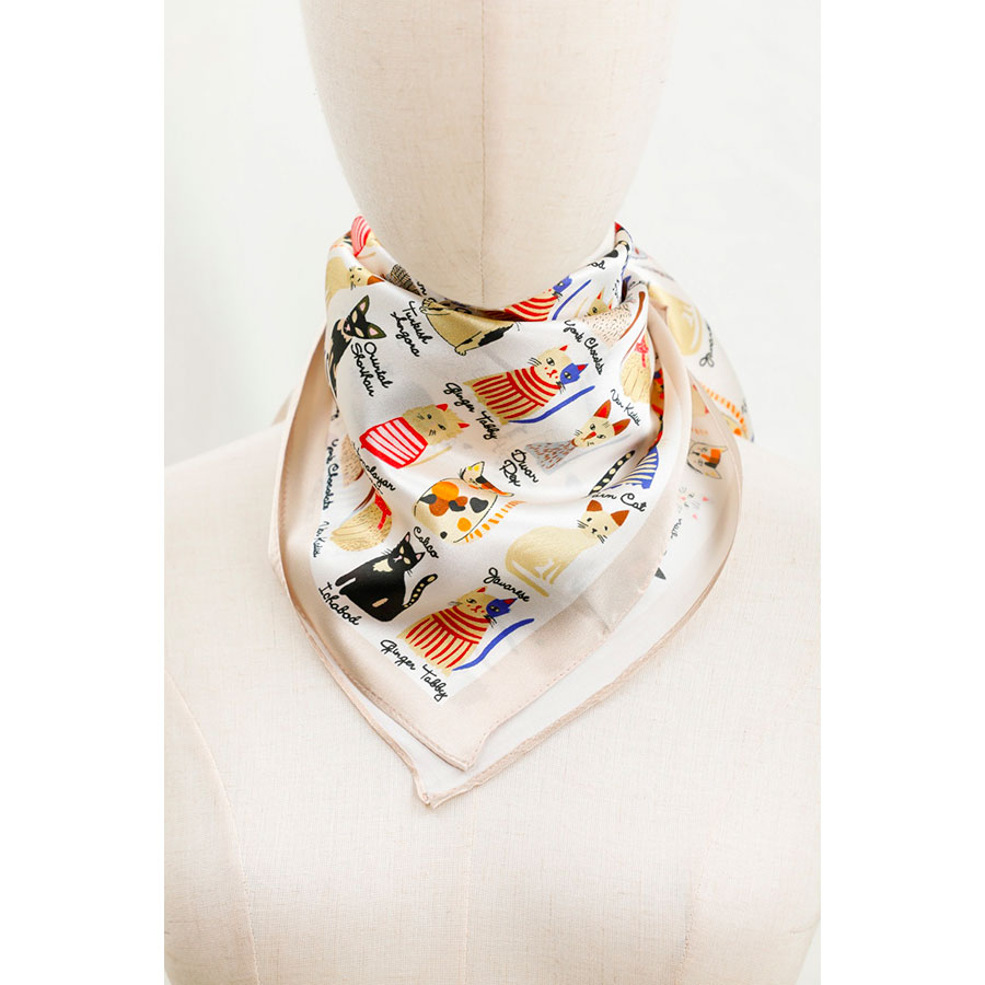 MAISON FANLI – Carré de Soie 50 Chats – Beige