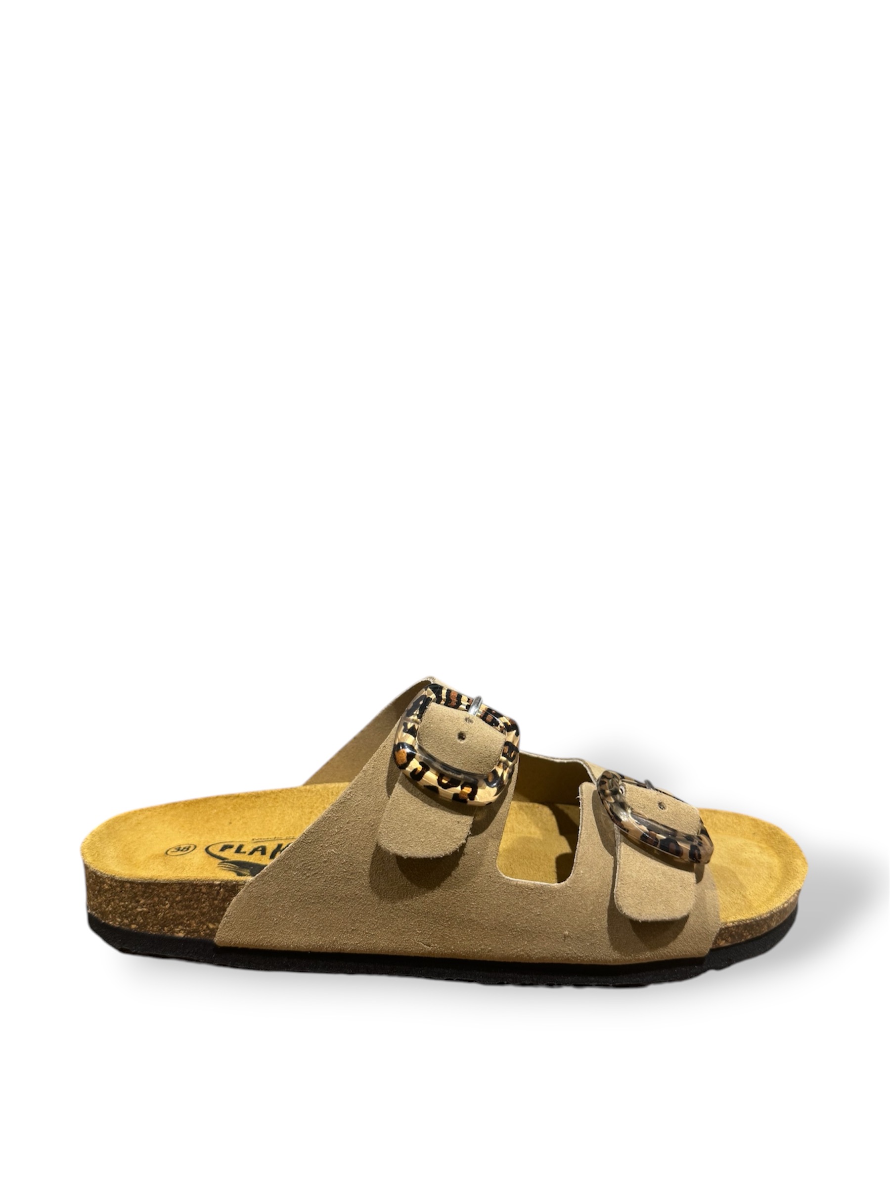 Un classique estival revisité avec une touche léopard audacieuse. Les mules Plakton associent confort et style avec un détail qui attire le regard : leurs boucles au motif léopard qui apportent du caractère à ce modèle intemporel.