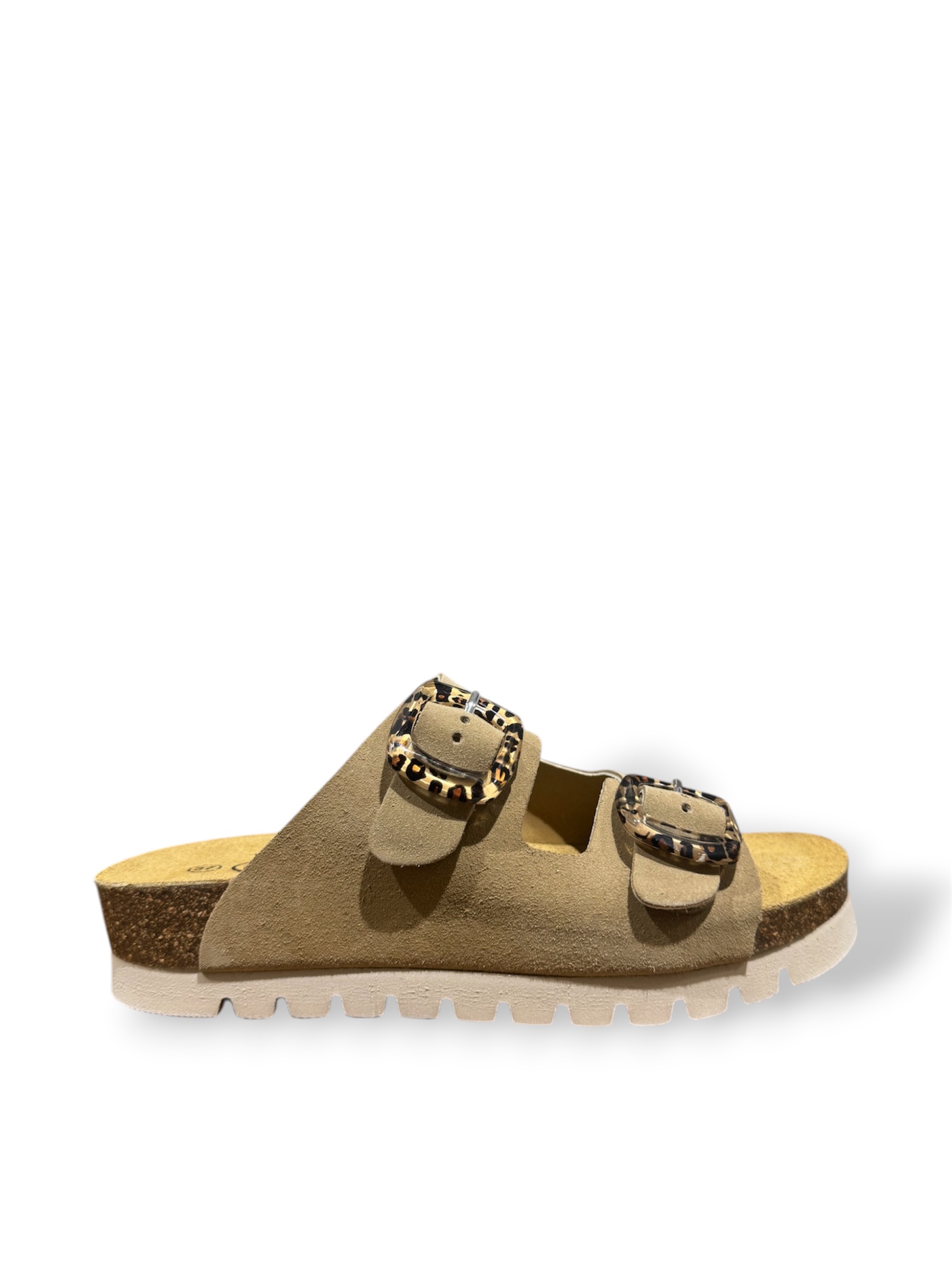 Un classique estival revisité avec une touche léopard audacieuse. Les mules Plakton associent confort et style avec un détail qui attire le regard : leurs boucles au motif léopard qui apportent du caractère à ce modèle intemporel.
