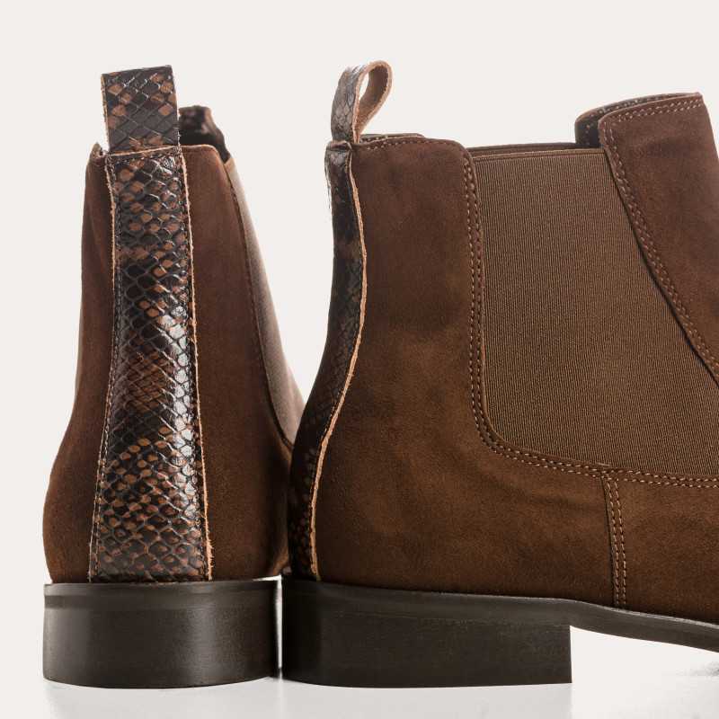 Conseils d’entretien :Dépoussiérer à l’aide d’un chiffon doux ou brosser délicatement dans le sens du grain avec une brosse souple. En cas de taches superficielles, utiliser une brosse en crêpe et frotter doucement la partie tachée. La paire peut être imperméabilisée ou la couleur peut être ravivée à l’aide d’un spray rénovateur.