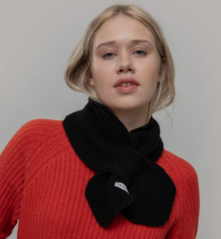 L’écharpe pour femme Britta, réalisée en cachemire recyclé raffiné, est un accessoire d’hiver à la forme très particulière qui rappelle un nœud. En effet, ce tour de cou en cachemire possède une boucle d’un côté qui permet de le fixer en l’enroulant autour du cou, offrant ainsi encore plus de chaleur.