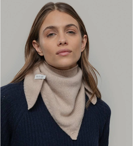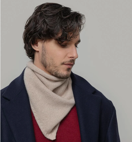 Masha est un accessoire d’hiver en cachemire recyclé très polyvalent et multifonctionnel. Il peut être porté comme une écharpe triangulaire, un foulard, un couvre-chef, une écharpe à capuche ou, de manière plus classique, comme un bandana pour homme et femme qui couvre les oreilles et attache les cheveux.