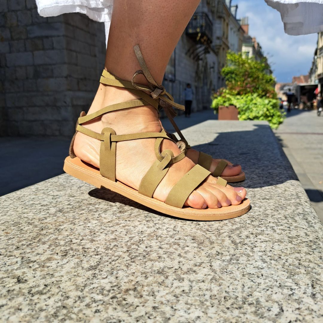 Les sandales sont faites en Grèce, sur l’île de Crète. Elles sont entièrement assemblées à la main. Tout les cuirs sont d’origine européenne et certifiés REACH. Les modèles se veulent authentiques et intemporels.
