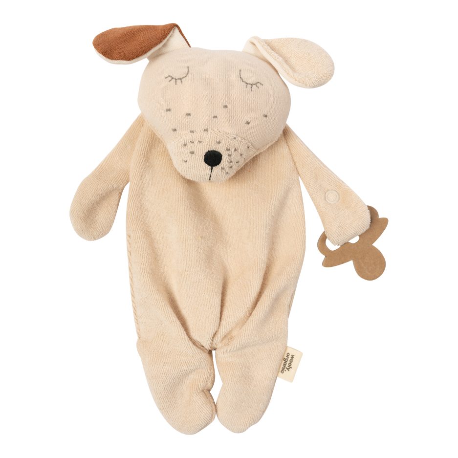 WOOLY ORGANIC – Doudou chien avec attache tétine – Ecru